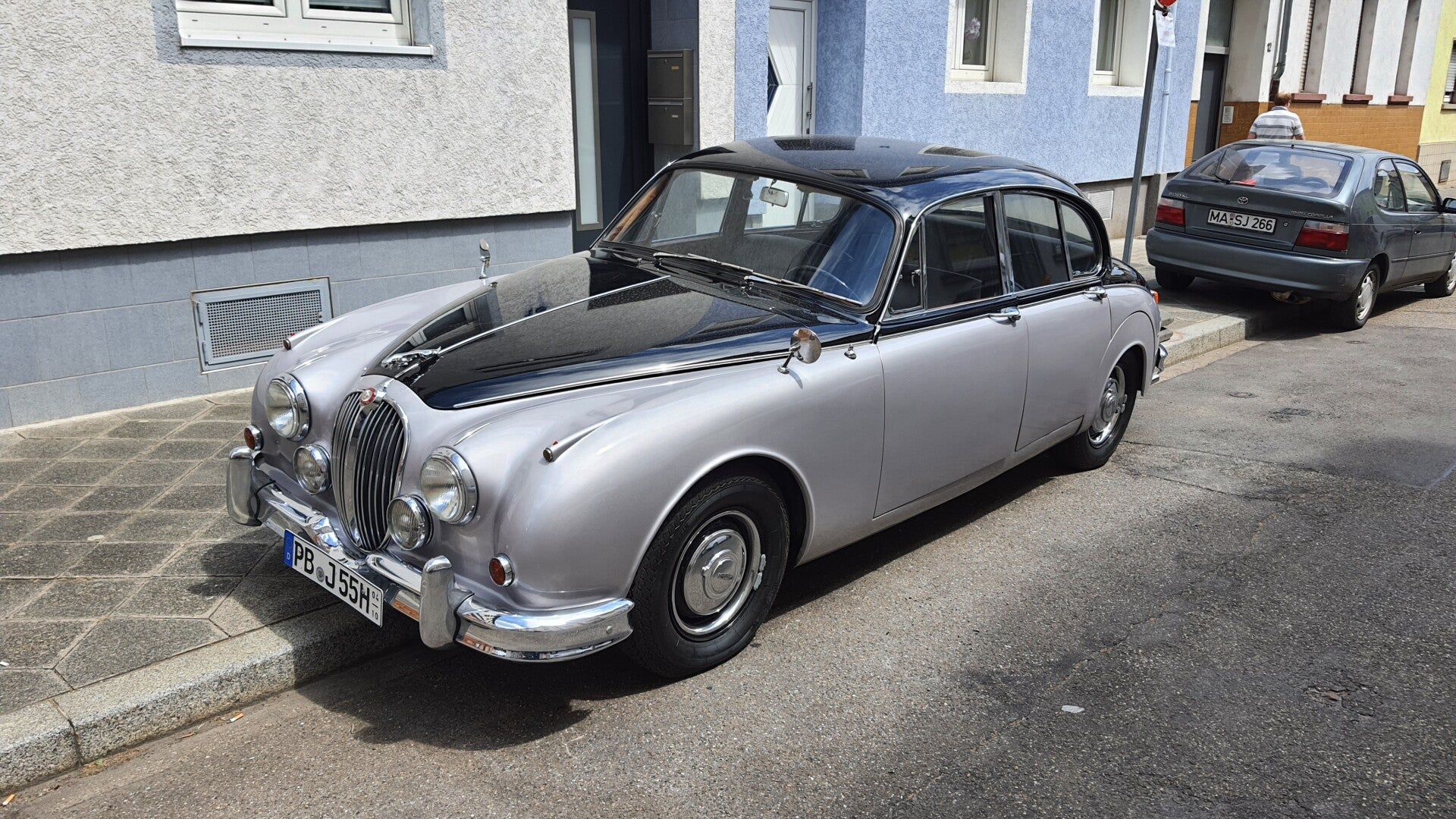 Er ist Bj. 01.07.1963, 4-Door Saloon, hat einen 6 Zylinder Motor mit 3,8 Liter Hubraum, er hat eine 3 Gang Vollautomatik, leider keine Klima, dafür Overdrive im letzten Gang, Innenraum mit black Lederpolsterung ist sehr gepflegt, äußerer Zustand (Lack) ohne Beschädigung, zweifarbig black und silber. Dachhimmel ist sauber und gepflegt. Als Gesamtlauleistung hat er 99.600 mls, das sind keine 170.000 km.